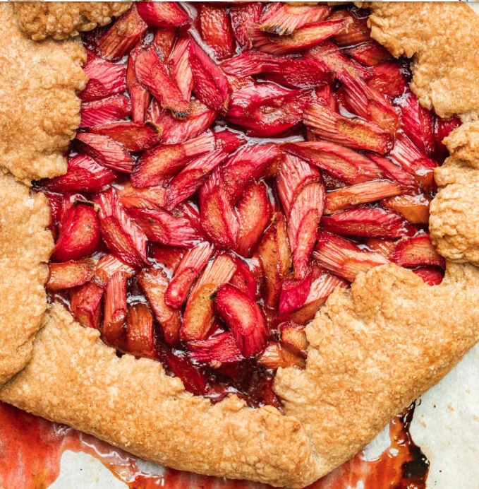 A seasonal galette, made with our all butter crust packed full of tender rhubarb, a great combination of delicate flaky layers of pastry and flavorful filling.