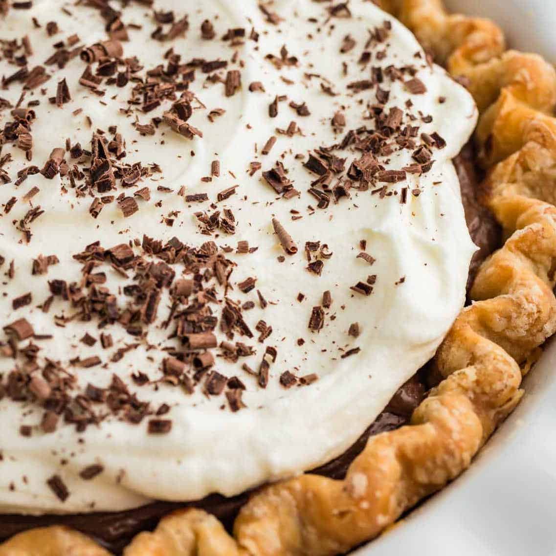A chocolate cream pie that’s as luxurious as you’re imagining: Pillowy whipped cream atop rich dark chocolate, held together with a housemade cookie crumb crust.