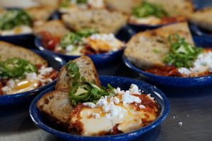 Shakshuka is about the tastiest, brightest, warming food that you’ve likely never made. It also eats equally well as a brunch, lunch or dinner. What is it? it’s a one-skillet recipe of eggs baked in a tomato-red pepper sauce spiced with cumin, paprika and a touch of chili. First you make the sauce, which comes together quickly on the stovetop, then you gently crack each of the eggs into the pan, nestling them into the sauce and the pan goes into the oven to finish. Shakshuka originated in North Africa, and like all great dishes, there are as many versions as there are cooks who’ve made it. I use feta and cilantro here, with fresh Jalapeño but it’s just as delicious with a dollop of greek yogurt spritzed with lemon and any number of soft herbs, dill, mint, parsley or even sweet basil.